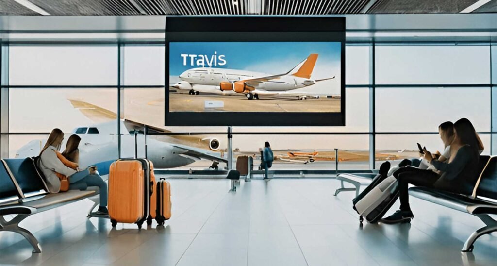 Dynamic and eye-catching ads placed at high-traffic points like terminals, lounges, and boarding gates.
